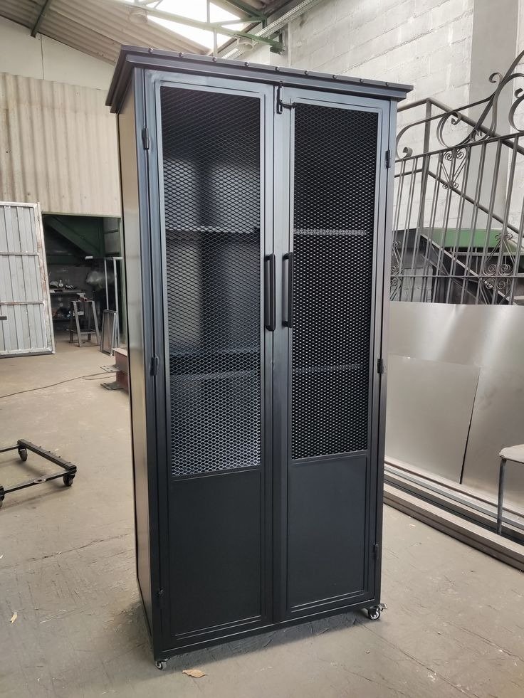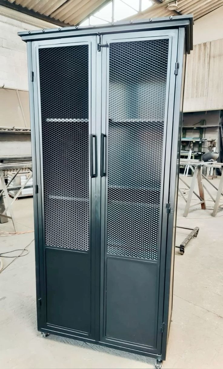 Este mueble cuenta con repisas espaciosas y puertas sólidas, pensadas para organizar ropa, zapatos, libros, vajilla, carpetas u objetos de uso diario. Su acabado en fierro negro tratado y pintado le da un look auténticamente industrial, aportando un toque urbano y sofisticado a cualquier ambiente.