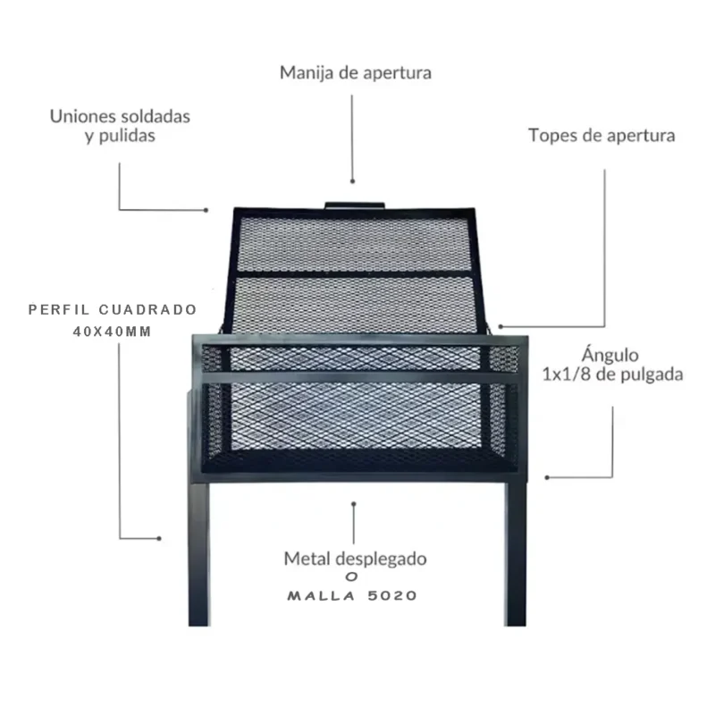 • Tanto la estructura como la tapa están hechas de hierro.