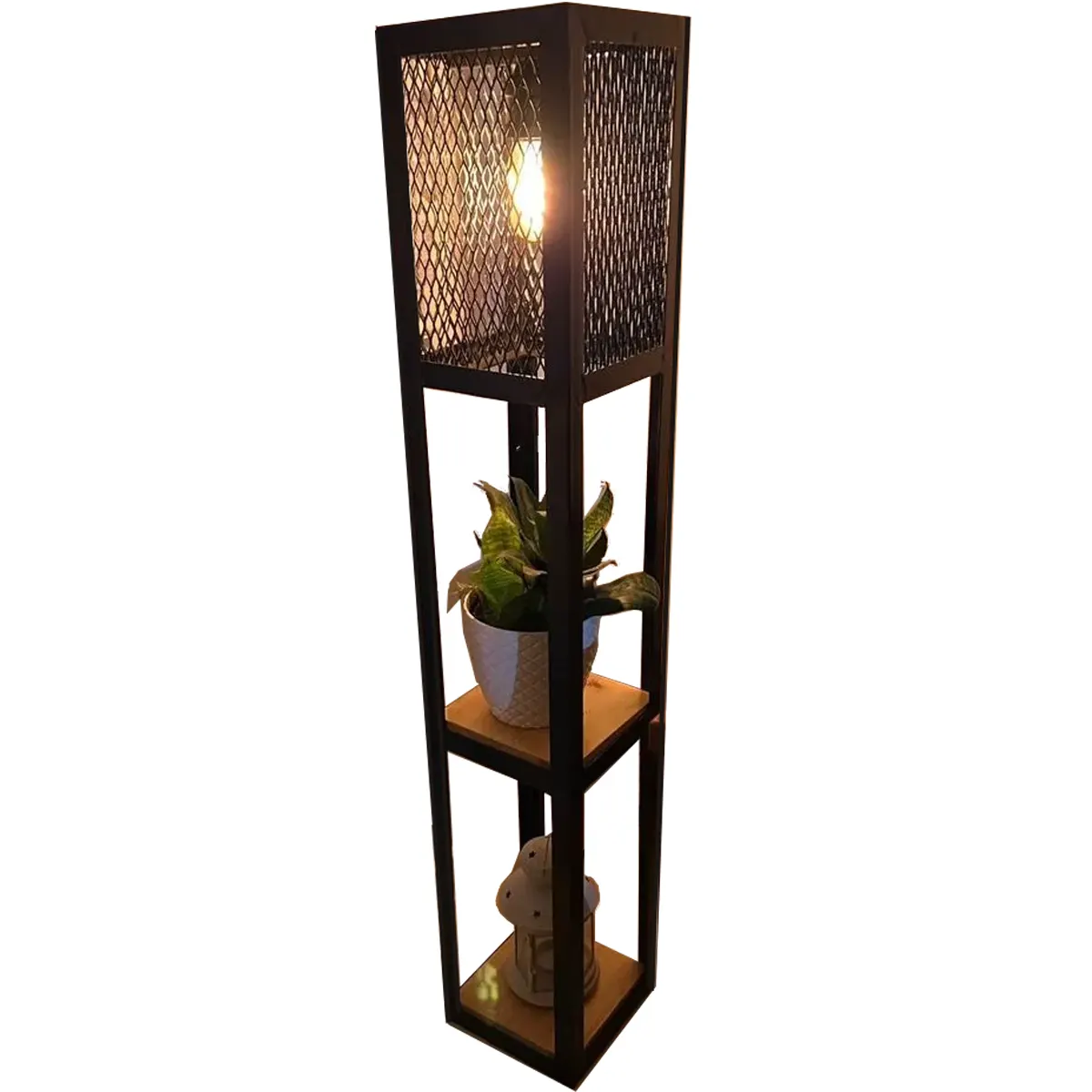 - Estilo Personalizable: Los estantes te permiten personalizar tu lámpara con objetos que reflejen tu estilo personal, desde plantas hasta recuerdos familiares.